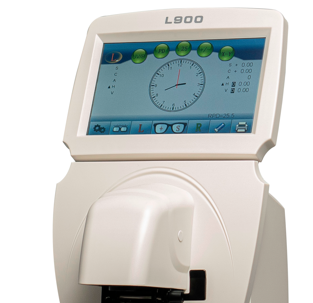 Al aplicar la tecnología Wavefront con el sensor Hartmann, el L900 tiene 145 puntos de medición que le permiten brindar una medición de alta precisión a gran velocidad. Utiliza LED de luz verde que no requiere compensación ABBE. En este caso, el resultado será más preciso en comparación con la tecnología tradicional de medición automática de lentes. El sistema óptico de diseño exclusivo permite que el L900 mida un rango esférico mucho más amplio, hasta ±35,00D. Esto ayuda a medir la lente para pacientes con miopía alta y otras lentes en casos complicados.