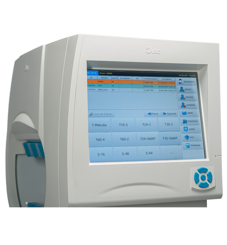 El perímetro IVS201A ofrece una amplia gama de patrones y estrategias de prueba, incluidos T30-2, T24-2, T10-2 para el diagnóstico de glaucoma y T-Macula para la evaluación de la función de la mácula. Además, también se incluyen patrones de prueba especiales como la viabilidad del conductor, discapacidad de seguridad social monocular/binocular. Para una mejor detección de la pérdida del campo visual causada por el glaucoma en etapa temprana, los puntos de T30-2 y T24-2 se configuran con precaución en la posición más sensible del haz de fibras nerviosas de la retina. El formato del informe es estilo Zeiss Humphrey para una fácil revisión y comparación con otros dispositivos.
